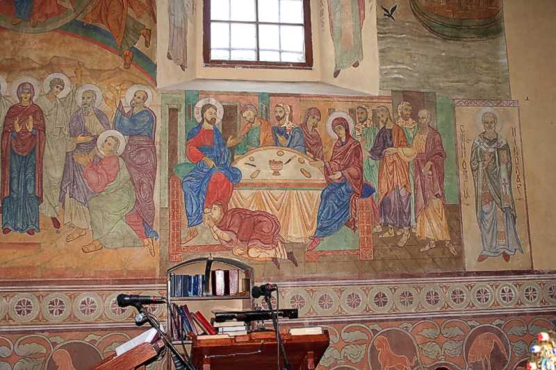 Ліворуч – фрагмент композиції «Вознесіння», праворуч – ікона св. миколи.