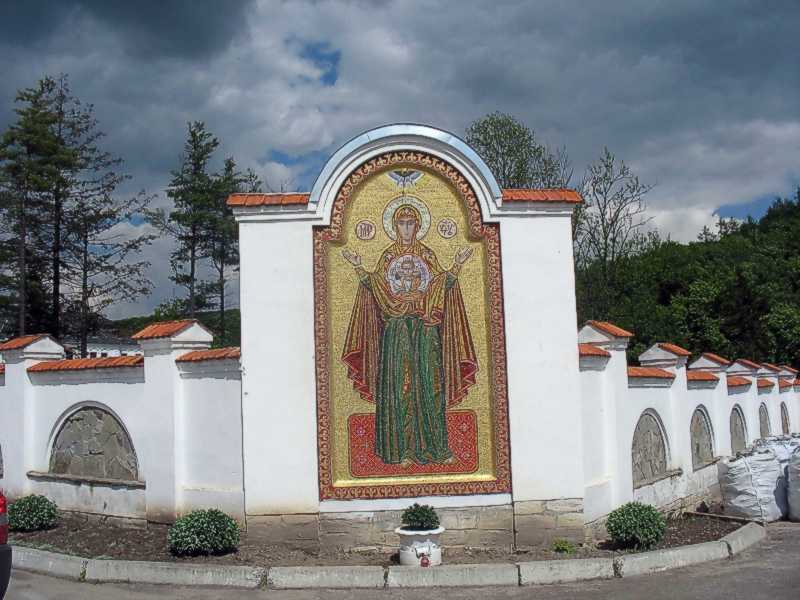 Огорожа з мозаїкою «Богородиця Знамення»Розмір зображення: 800:600 піксел Фото Зенона Боровця і Богдана Тхора, 17 травня 2010 р. |