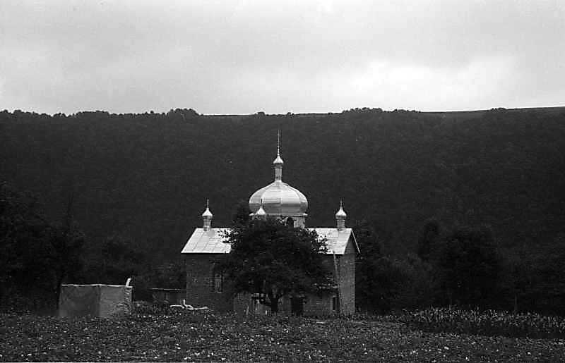 ЦеркваРозмір зображення: 800:515 піксел Церква: орієнтарія вівтаря 210° (заснована 1990 р., недобудована); дзвіниці нема. До бічної вулиці – А4, в центрі села не на цвинтарі. Спостереження М.І.Жарких, 25 червня 1992 р. |