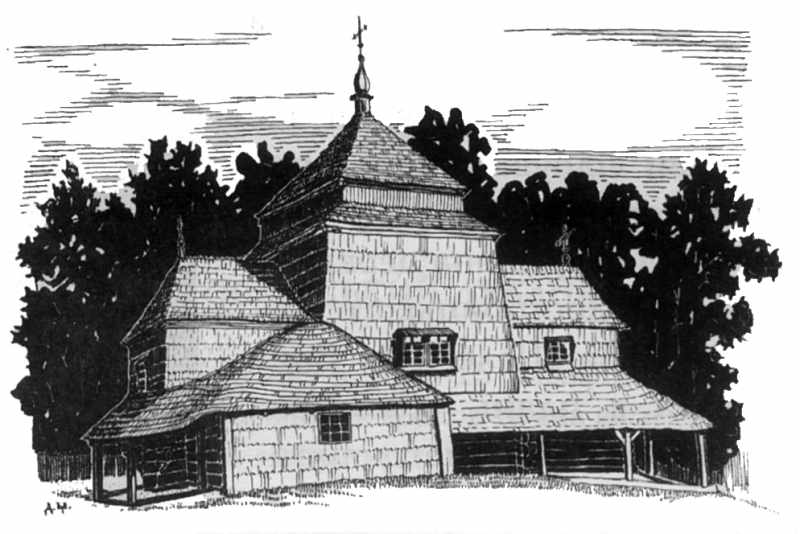 1925 р. Загальний вигляд з позиції А1Розмір зображення: 800:534 піксел Рисунок М. Драґана 1925 р. зі збірки Національного музею у Львові № 599. Джерело: Слободян В. Церкви України: Перемиська єпархія. – Льв.: 1998 р., с. 169. |