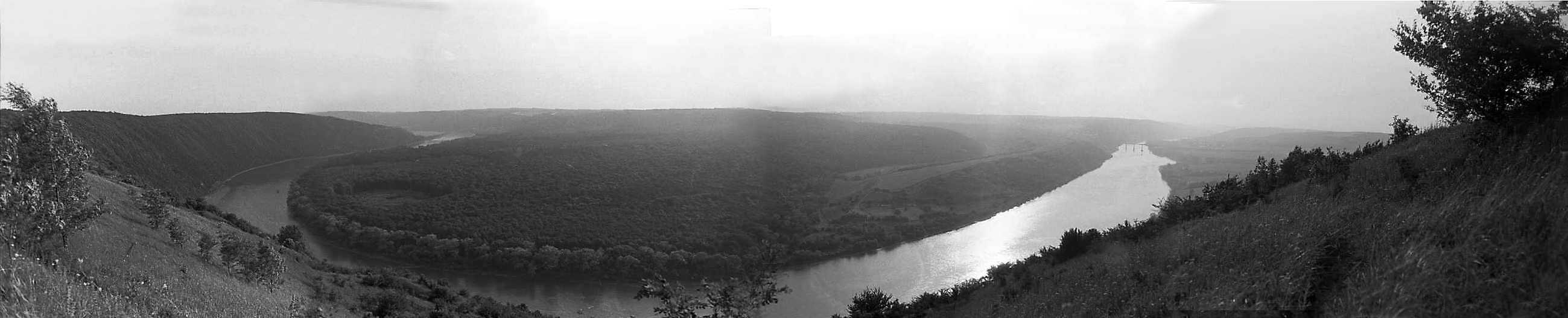 1988 р. Панорама Дністра нижче села УстечкоРозмір зображення: 2599:527 піксел 1988 р. 21 червня. Фото М.І.Жарких. Негатека, № 416-25+9. |