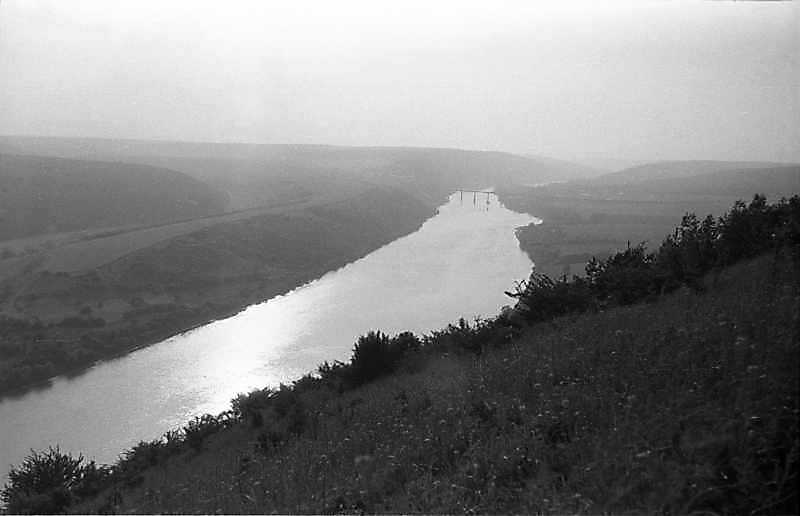 Вид на Дністер і міст в напрямку на північний західРозмір зображення: 800:516 піксел 1988 р. 21 червня. Фото М.І.Жарких. Негатека, № 416-28. |