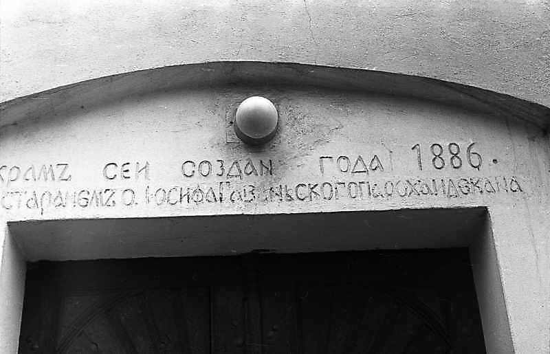 Напис над входом Розмір зображення: 800:515 піксел 1988 р. 22 червня. Фото М.І.Жарких. Негатека, № 423-34. Вище | Наступна сторінка