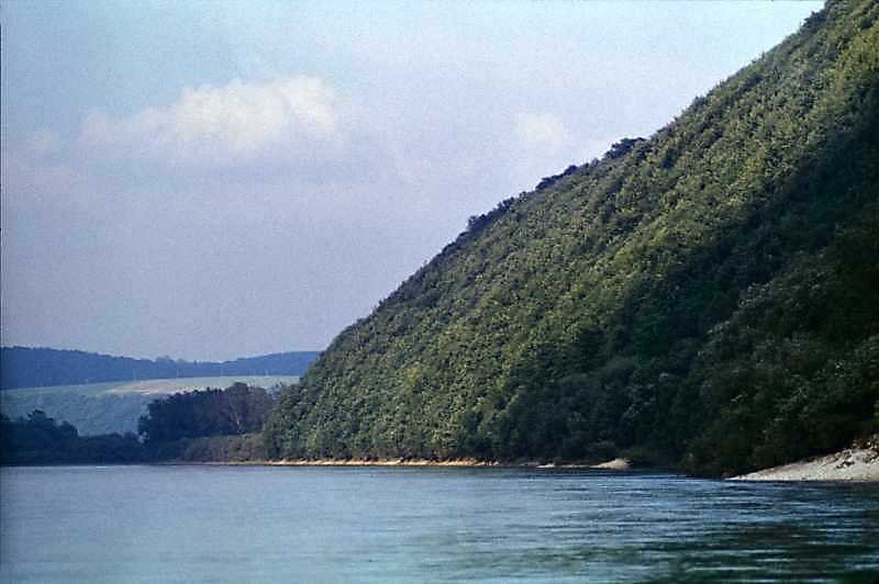1988 р. Вид Дністра нижче від Устя-Зеленого. Праворуч – схил правого берега Розмір зображення: 800:532 піксел Попередня сторінка | Вище | Наступна сторінка