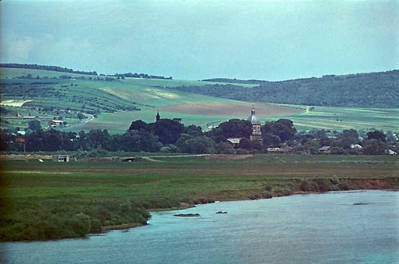 1988 р. Панорама з костелом і церквоюРозмір зображення: 800:529 піксел 1988 р. 14 червня. Фото М.І.Жарких. Слайдотека. |