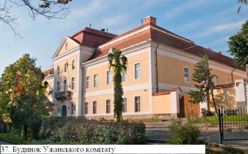 Будинок Ужанського комітату, 1809 (іст., архіт.). Пл. Жупанатська, 3. Важливий архітектурний акцент забудови площі, на невисокому пагорбі, де разом з разміщеною поруч реформатською церквою, складають композиційну домінанту архітектурного середовища. Нині тут Закарпатський художній музей ім. Й. Бокшая та ряд державних і комерційних установ.