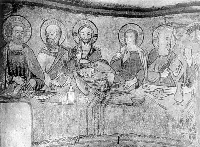 Тайна вечеряРозмір зображення: 800:587 піксел Тайна вечеря. Деталь фрески церкви Миколи в Горянах. XIII – XIV ст. Джерело: Історія українського мистецтва. – К.: Наукова думка, 1967 р., т. 2, с. 162. |