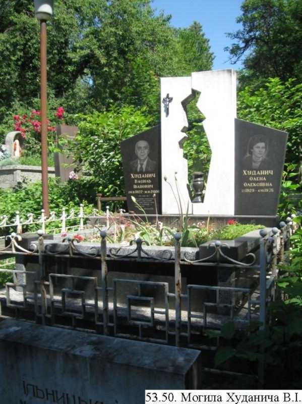 Могила Худанича В.І. (іст.). На кладовищі Кальварія. Вул. Тиха, по праву сторону від Будинку смутку.