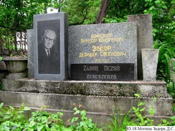 Могила Задора Д.Є. (іст.). На кладовищі Кальварія. Вул. Тиха. У правій частині від центральної дороги, яка веде до кладовища, біля металевої огорожі. Задор Дезидерій Євгенович (20.10.1912, м. Ужгород – 16.09.1985, м. Львів) – композитор, диригент, педагог. Народився в учительській родині. Навчався в Ужгородській реальній гімназії. У 12 років успішно виступав у м. Плзень з творами Моцарта, Бетховена, написав музику до мелодрами «Гізела і Фея». У 1930-34 навчався у Празькій консерваторії, яку закінчив по класу фортепіано, органу, хорового диригування.