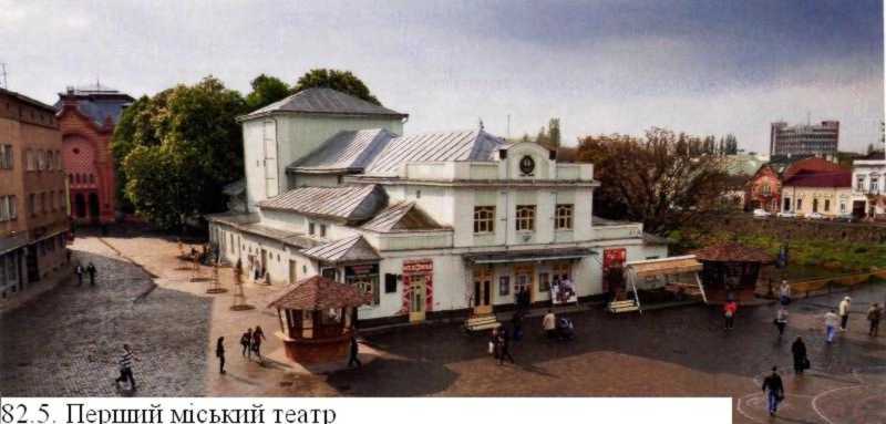 Перший міський театр в Ужгороді, 1907 – 20 (іст.). Пл. Театральна, 8. В історичній частині міста, стоїть окремо від червоної лінії забудов, розташований справа від пішохідного мосту через річку Уж. Нині Закарпатський академічний обласний театр ляльок «Бавка» (2005).