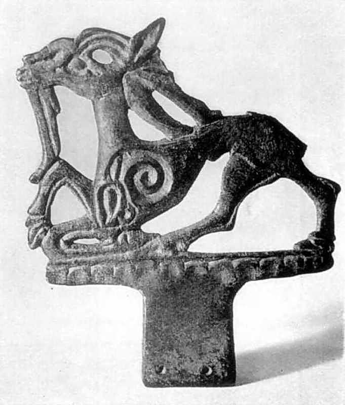 Мідне навершя, прикрашене зображенням тварини з Чмирьового кургана Запорізької обл. IV ст. до н. е. Державний історичний музей УРСР.