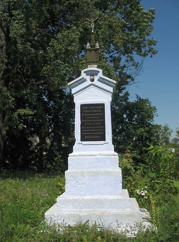 Напис (польською мовою): «Марія з Краттерів 1-е [у першому шлюбі] Хауснер, 2-е [у другому шлюбі] Мангольд власниця маєтків Горожанна і Ричигів (7.06.1815 – 11.07.1908). На честь і пам’ять найдорожчої матері поставила вдячна дочка Северина з Хауснерів Генцльова».