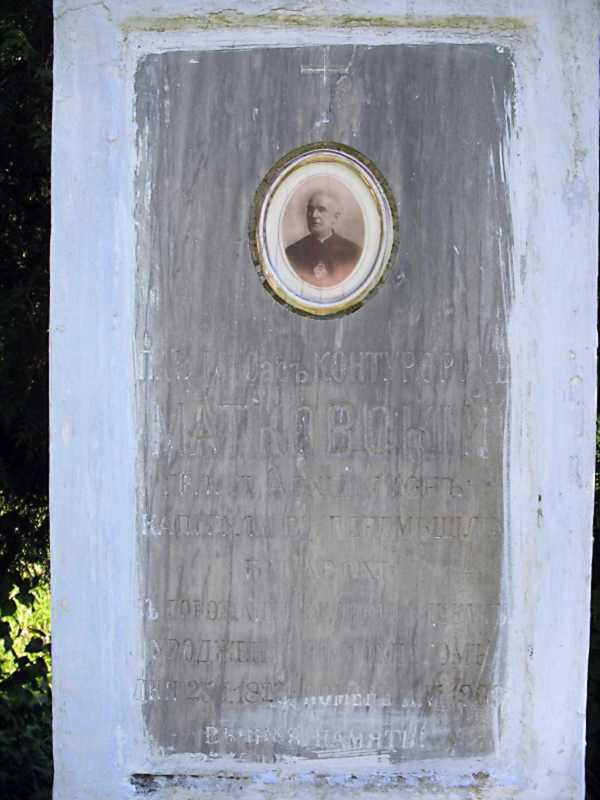 Напис: «Павло Сас Контурорич Матковскій гр. кат. архідиякон капітули в Перемишлі б. парох в Горожанні Великой декан уроджений в Мохнатом дня 25.I.1823 помер 11.VI.190[1?] Вічная память».