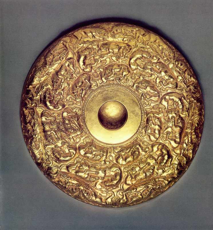 Фіал, прикрашений триярусним фризом з левами, які нападають на оленей та коней.