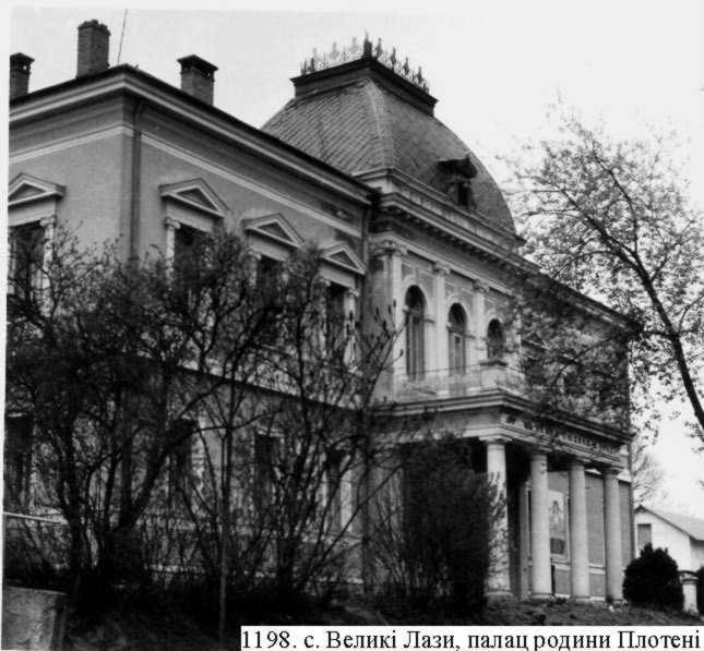 У 1896 Н. Плотені відійшов від активних гастролей і зайнявся спорудженням палацу і закладанням з привезених з усього континенту рідкісних декоративних дерев чудового парку, виноградника. Незадовго до смерті Н. Плотені переїхав до Будепашта, де й помер у 1933. Неординарна історія родинного маєтку Плотеніїв і закладеного навколо нього парку лише в останні роки набуває реальних обрисів. Нині тут знаходиться районний центр дитячої творчості. Палац у с. Великі Лази – один з небагатьох, що збереглися у сільській місцевості і мають високі архітектурні якості.