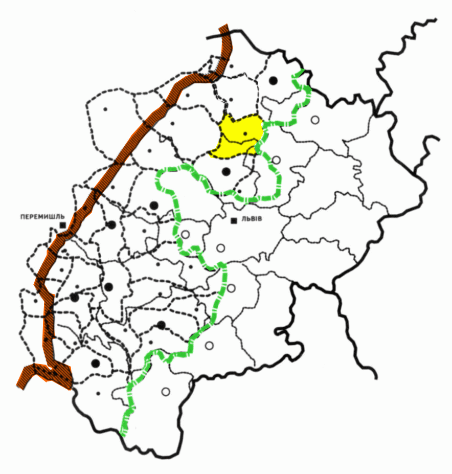 Деканат на карті Перемиської єпархіїРозмір зображення: 884:927 піксел Джерело: Слободян В. Церкви України: Перемиська єпархія. – Льв.: 1998 р., с. 71. |
