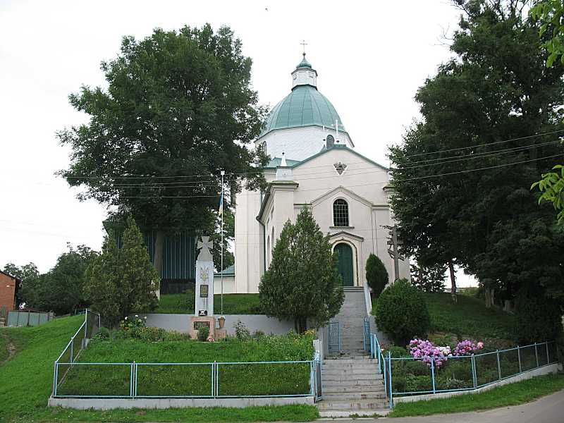 2008 р. Загальний вигляд з позиції С3 Розмір зображення: 800:600 піксел Фото Зенона Боровця, 9 серпня 2008 р. Вкладені елементи Пам’ятник, дзвіниця та церква