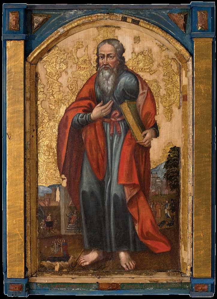 Ікона «Св. Іоан Богослов». 1698 р. Походить з церкви с. Окорськ Локачинського району. Експозиція музею.