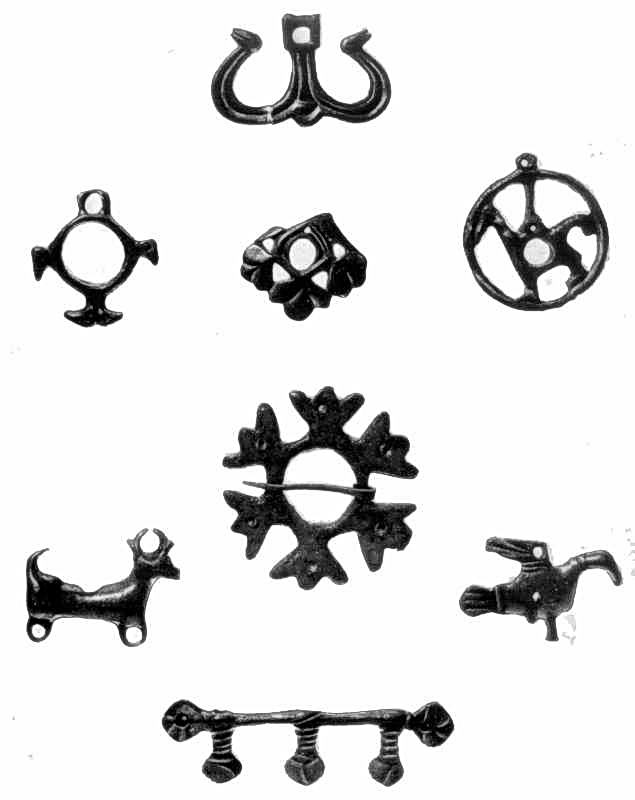 З Салтова походять також дві цікаві бляшки з поясним зображенням людини [А. М. Покровский. Верхне-Салтовский могильник.- «Труды XII археологического съезда», т. І, М., 1905, стор. 473.]. Верхню частину предмета займає обличчя з добре переданими рельєфними деталями: трохи розкосими очима, носом і, особливо, підкресленим ротом з вищиреними зубами; в нижній частині бляшок показано схрещені на грудях (як на скіфських стелах) руки – надто маленькі, коли порівняти їх з обличчям (с. 87 – 88).