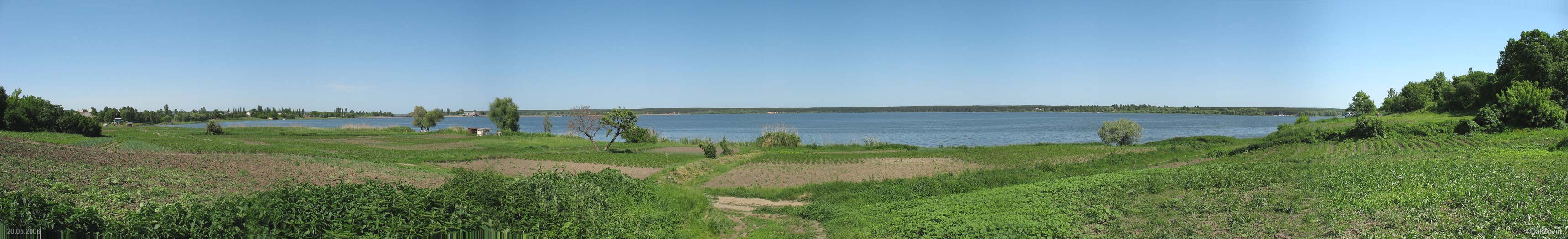 Панорама реки Северский Донец (ныне Печенежское водохранилище) со старой дороги в урочище…Розмір зображення: 3439:525 піксел Панорама реки Северский Донец (ныне Печенежское водохранилище) со старой дороги в урочище Караван 20 травня 2006 р.