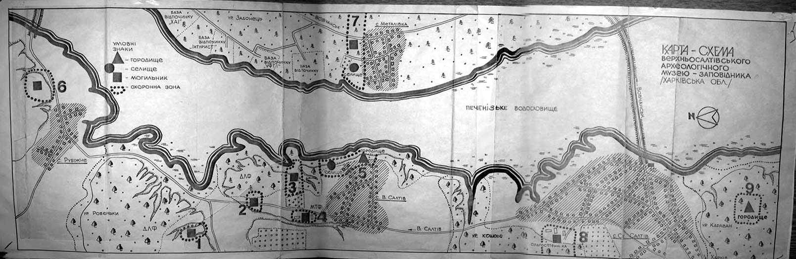 Карта-схема верхне-салтовского археологического музея-заповедника Розмір зображення: 1609:525 піксел Вище | Наступна сторінка