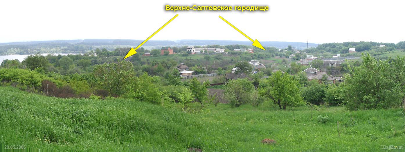 Панорама Верхньосалтівського городища Розмір зображення: 1395:525 піксел 20 травня 2006 р. Вкладені елементи Лінії оборони на місцевості