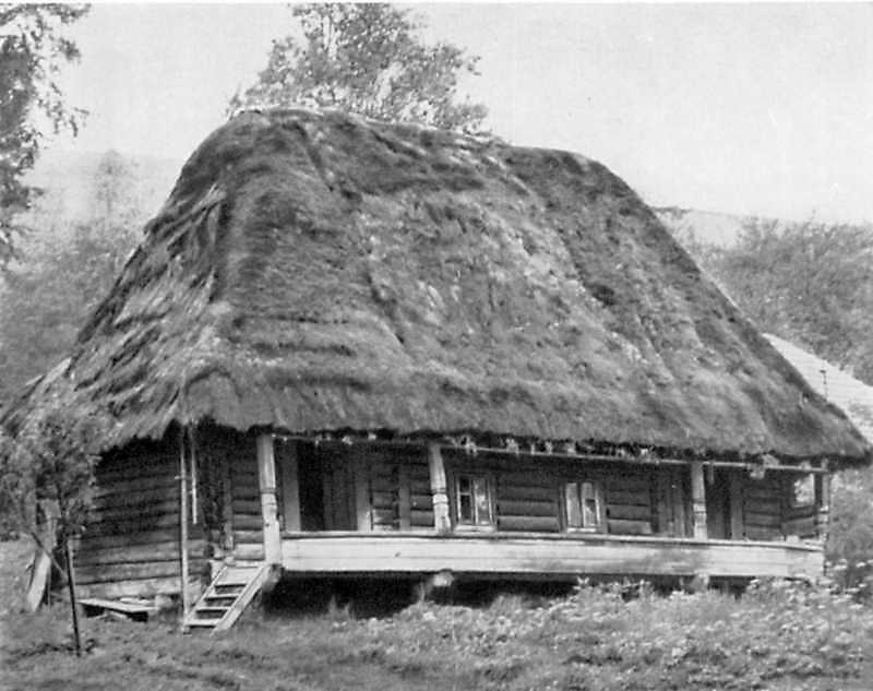 [1976 р.] Хата. Загальний виглядРозмір зображення: 800:633 піксел Хата в селе Верхнєє Студене Межгорского района Джерело: Макушенко П. И. Народная деревянная архитектура Закарпатья (18 – начала 20 века). – Москва: Стройиздат, 1976 г., с. 107. |