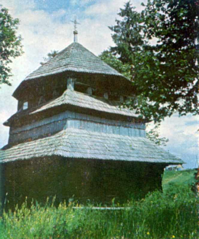 [1987 р.] ДзвіницяРозмір зображення: 664:800 піксел Дзвіниця. С. Верхня Рожанка Сколівського р-ну Львівської обл. 1804 р. Джерело: Народна архітектура українських Карпат. – К.: Наукова думка, 1987 р., с. 190. |