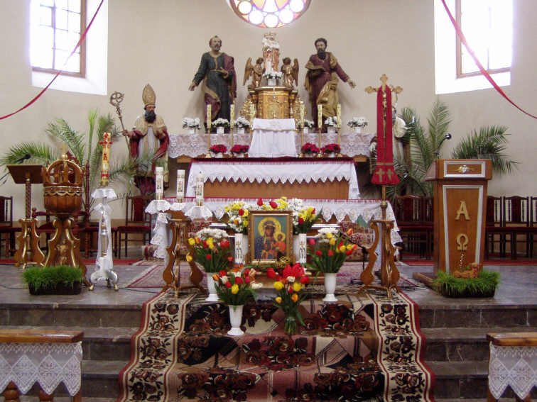 Головний вівтар Розмір зображення: 756:567 піксел Widok ołtarza głównego w kościele parafialnym Джерело: Попередня сторінка | Вище | Наступна сторінка