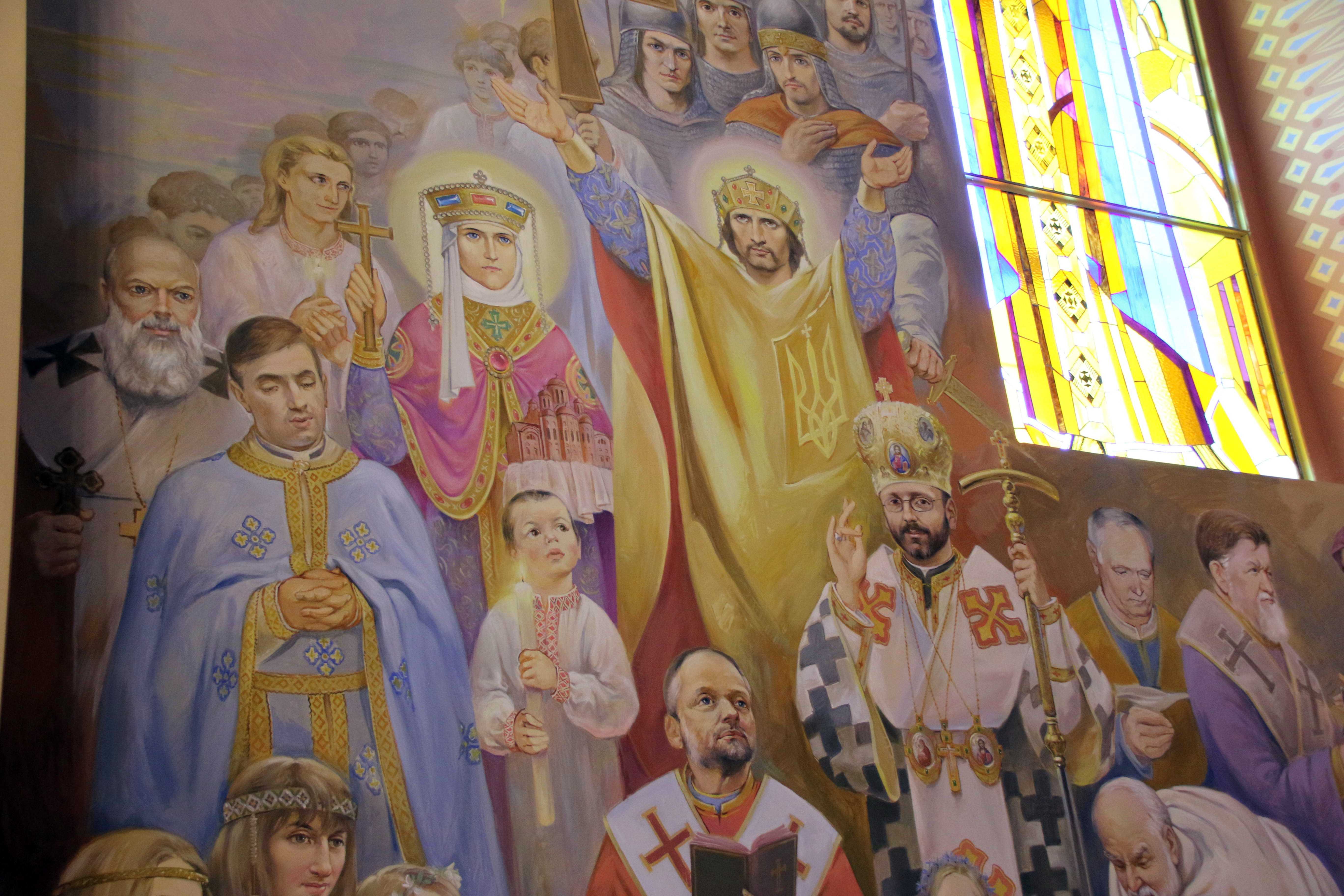 В центрі – св. Ольга (яка померла за 20 років до хрещення) і св. володимир.