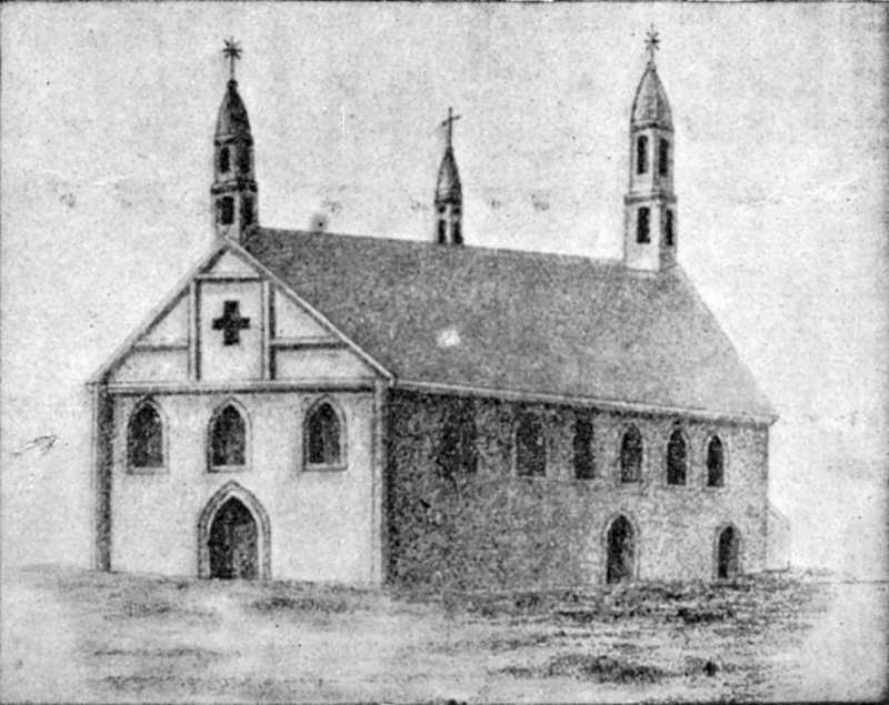 Вигляд первісної спорудиРозмір зображення: 800:635 піксел Катедра заснована Ягайлом на місці святилища Перкунаса в 1387 р. Знищена пожежею в 1399 р. Джерело: Sokołowski A. Dzieje Polski ilustrowane. – Warszawa, 1900, t. 2, s. 8. |