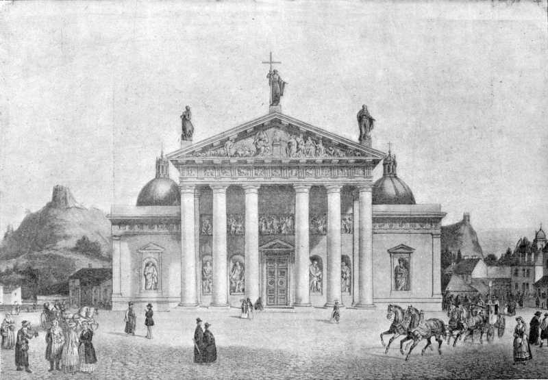 Катедра перебудована в кін. 18 ст. у стилі паладіанського класицизму за проектом архітектора Гуцевича.
