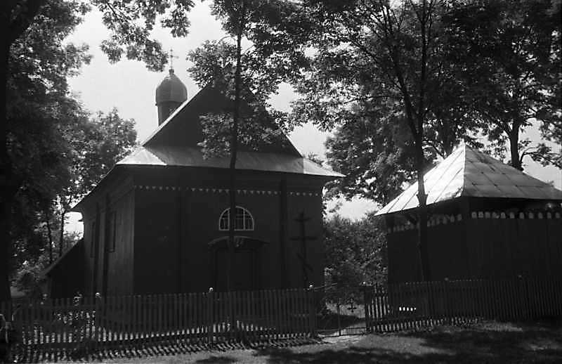 1989 р. Церква і дзвіниця. Вигляд з позиції С3Розмір зображення: 800:518 піксел 1989 р. 7 липня. Фото М.І.Жарких. Негатека, № 525-30. |