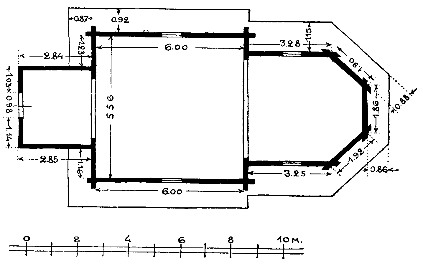 План церкви в с. Гамулець (Львівщина) 1756 р.Розмір зображення: 1435:903 піксел Джерело: Січинський В. Деревяні дзвіниці і церкви Галицької України XVI – XIX ст. – Льв.: 1925 р., № 42. |