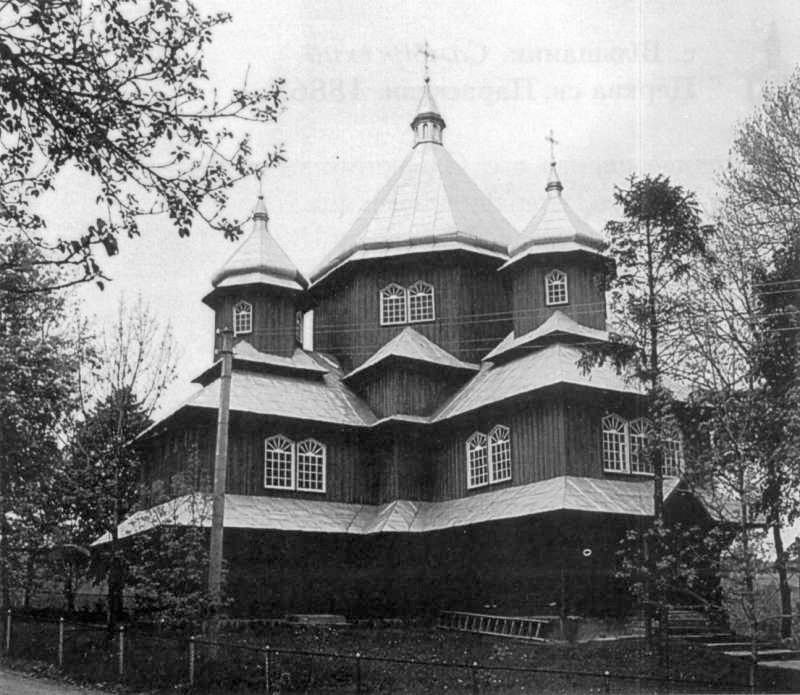 У 1517 році в селі вже існувала парафіяльна церква. Акт візитації 1766 р. подає опис дерев’яної тризрубної двоверхої церкви, один з верхів якої був тризаломним (ймовірно над навою), а один – двозаломним. Інвентар 1830 р. датує її 16 ст., а шематизм 1903 р. – 1798 p., можливо, роком перебудови. У 1923 р. на її місці збудовано існуючу дерев’яну, хрещату в плані, п’ятиверху церкву за проектом Т. Горницького з Самбора. Великий восьмерик, вкритий наметовою банею з ліхтарем і маківкою вінчає середхрестя, менші встановлені на трисхилих дахах рамен. По другій світовій війні весь час чинна.