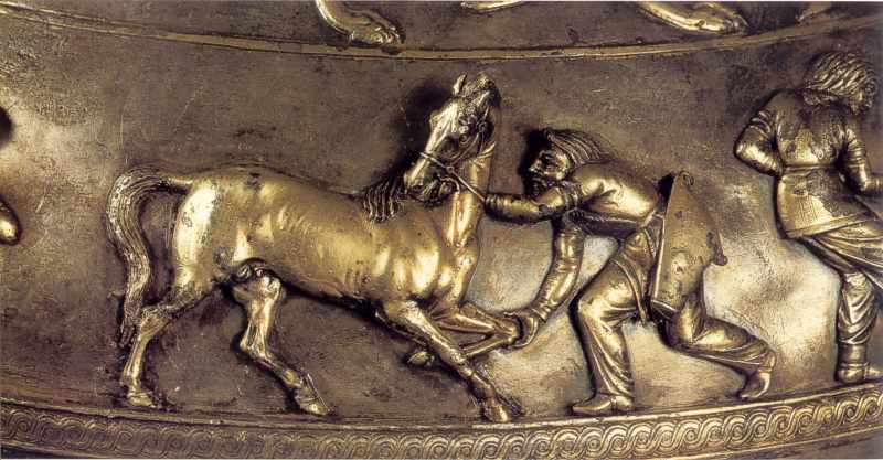 Фрагмент верхнього фризуРозмір зображення: 800:417 піксел Джерело: Scythian art. – Leningrad: Aurora art publishers, 1986, № 267. |