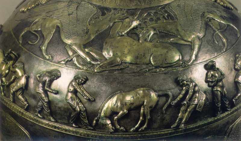 Фрагмент верхнього фризуРозмір зображення: 800:469 піксел Джерело: Brasinszkij I.B. Szkita kincsek nyomaban. – Budapest: Helikon, 1985, № 65. |