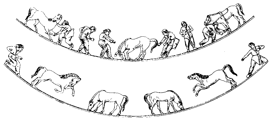 Розгортка сцен амфориРозмір зображення: 1077:482 піксел Джерело: Gold der Steppe: Archaeologie der Ukraine. – Schleswig: 1991, S. 172. |