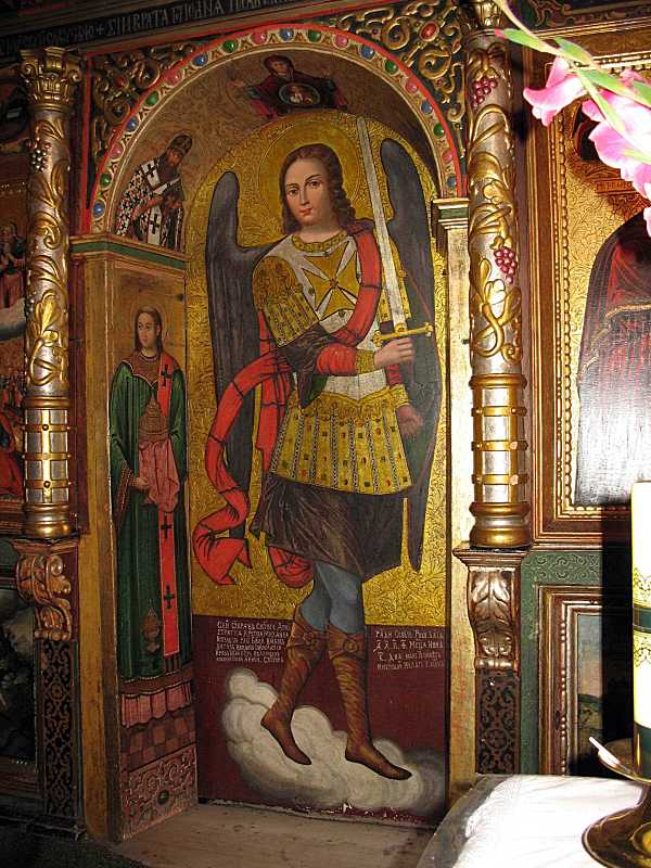 Архангел Михаїл (ікона намісного ряду)Розмір зображення: 600:800 піксел Фото Зенона Боровця і Богдана Тхора, 8 серпня 2006 р. |