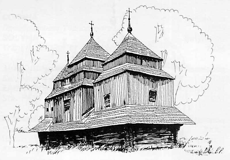 Загальний вигляд з позиції А2Розмір зображення: 800:556 піксел Волосате Св. Великомученика Димитрія 1837 Літовищі Рисунок Р.Раделицького. Церква зруйнована. Джерело: Іванусів О. Церква в руїні. – St. Catharines, 1987, с. 319. |