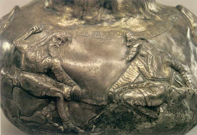 Розмова скіфів 2Розмір зображення: 800:551 піксел Джерело: Scythian art. – Leningrad: Aurora art publishers, 1986, № 172. |