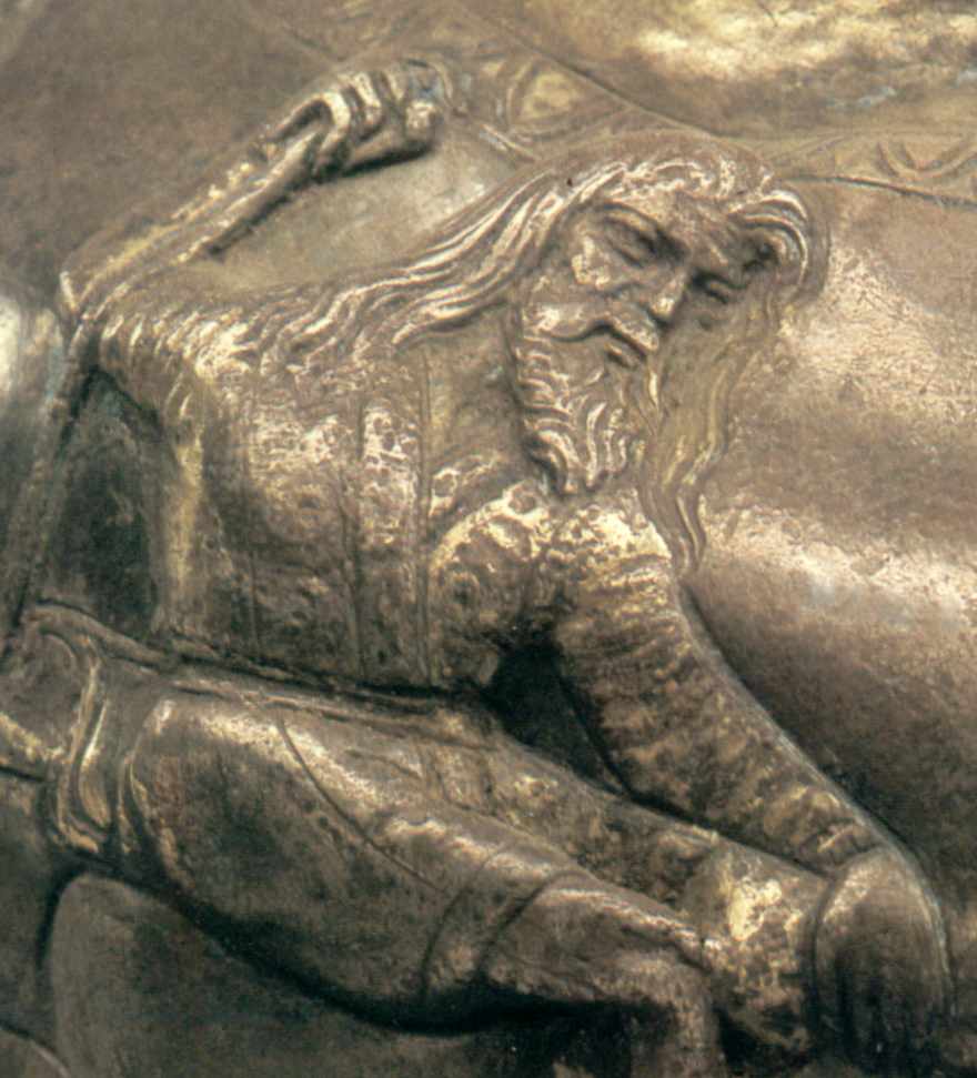 Залізна застібка для ременя із золотою пластиною у формі двох голів звірів