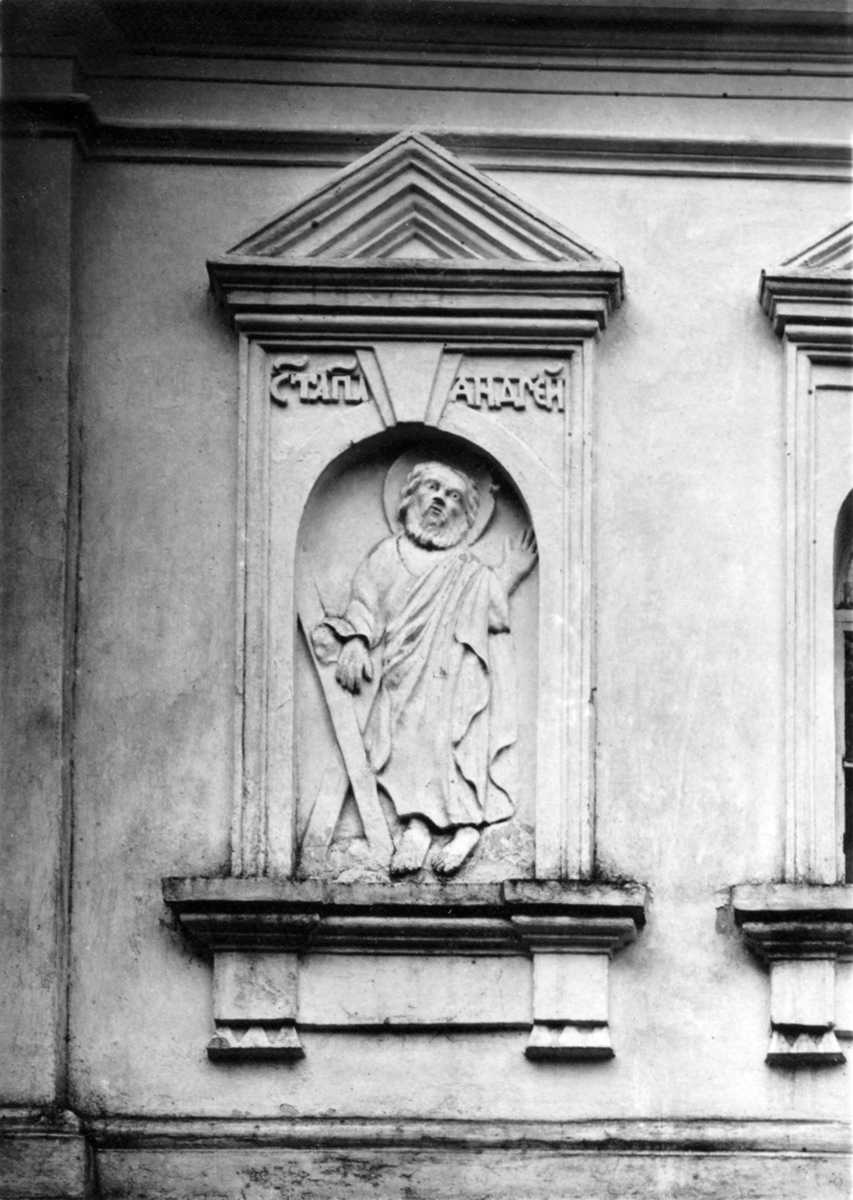 Рельєф «Апостол Андрій»Розмір зображення: 853:1200 піксел Фото Стефана Таранушенка і Павла Жолтовського з експедиції Харківського музею українського мистецтва. 1920-і рр. (?) Опубліковано 1.06.2020 р. |