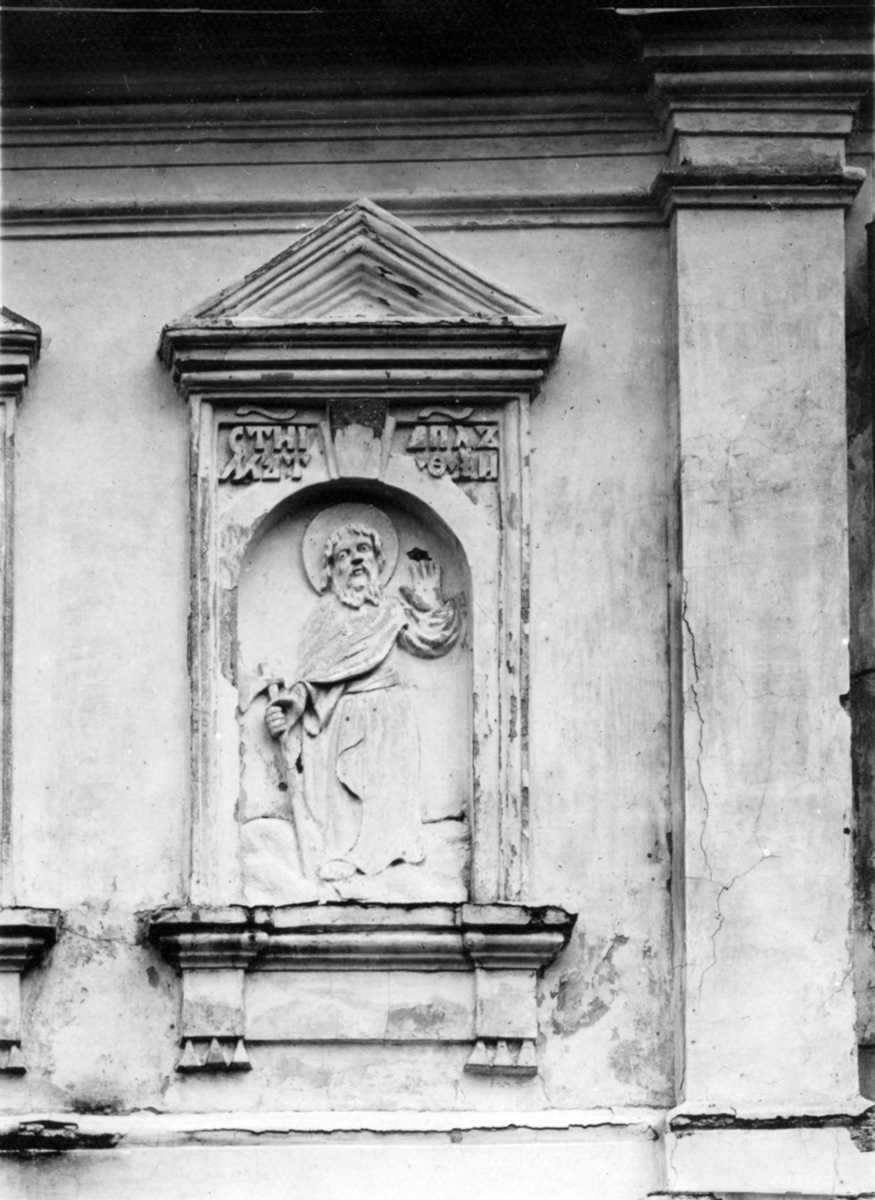 Рельєф «Апостол Матфій»Розмір зображення: 875:1200 піксел Фото Стефана Таранушенка і Павла Жолтовського з експедиції Харківського музею українського мистецтва. 1920-і рр. (?) Опубліковано 1.06.2020 р. |
