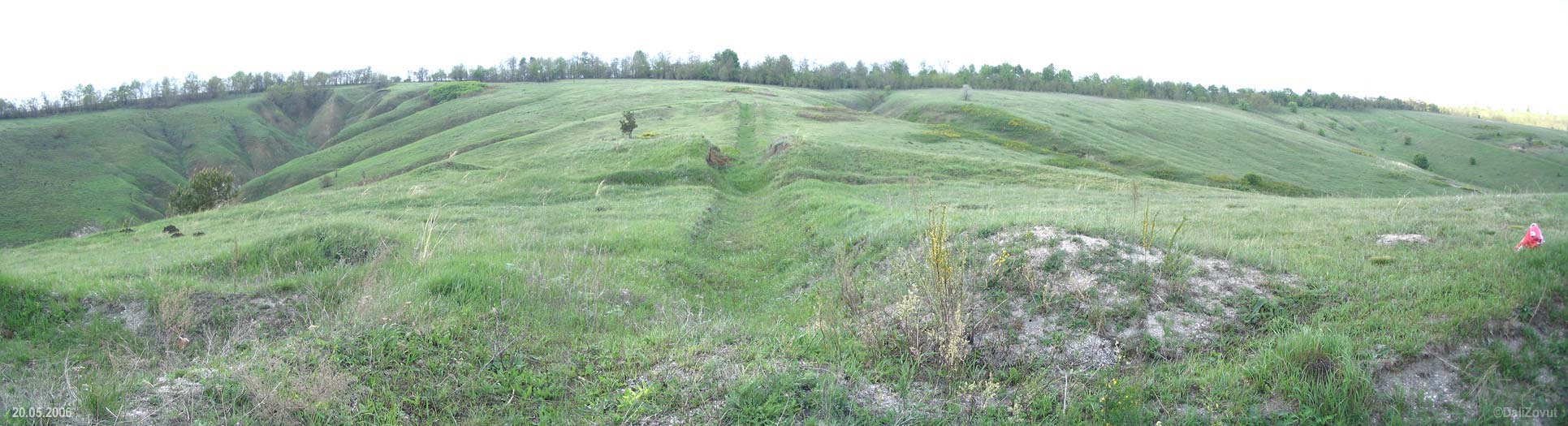 Первая и вторая линии укреплений северной части городища, по центру - археологический раскопРозмір зображення: 1931:525 піксел 20 травня 2006 р.