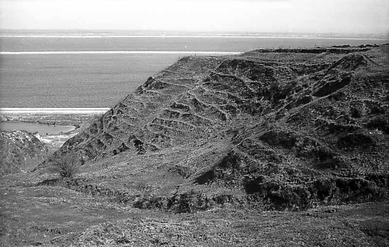 1977 р. Схили городища Розмір зображення: 800:509 піксел 1977 р. 9 квітня. Фото М.І.Жарких. Негатека, № A249-19. Попередня сторінка | Вище | Наступна сторінка