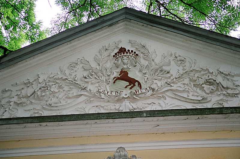 Фронтон північного фасаду з гербом ФредрівРозмір зображення: 800:531 піксел Фото Зенона Боровця і Богдана Тхора, 25 липня 2017 р. |
