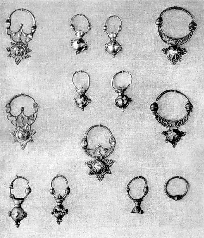 Сережки та лунниці з зерню з Хар’ївського скарбу на Сумщині. VIII ст. Інститут археології АН УРСР.