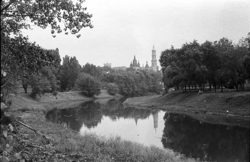 1986 р. Вид на річку Лопань та історичний центр з півночіРозмір зображення: 800:518 піксел 1986 р. 21 червня . Фото М.І.Жарких. Негатека, № 306-06. |