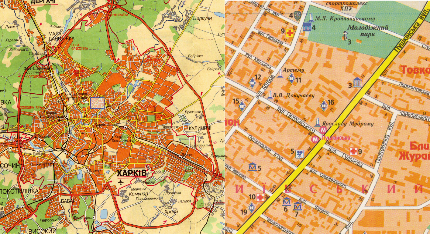 Ситуаційний план (церква позначена білим хрестом 3) Розмір зображення: 1415:772 піксел Вище | Наступна сторінка